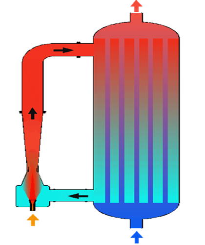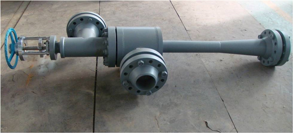 合成塔開工用“汽—水”噴射加熱器:用以在啟動階段對反應(yīng)物進行預(yù)熱。為了實現(xiàn)變速率加熱,我們通常將噴射器設(shè)計成自動或人工可調(diào)結(jié)構(gòu)的。這類結(jié)構(gòu)的噴射器常用來需要經(jīng)常變負(fù)荷運行的裝置中。