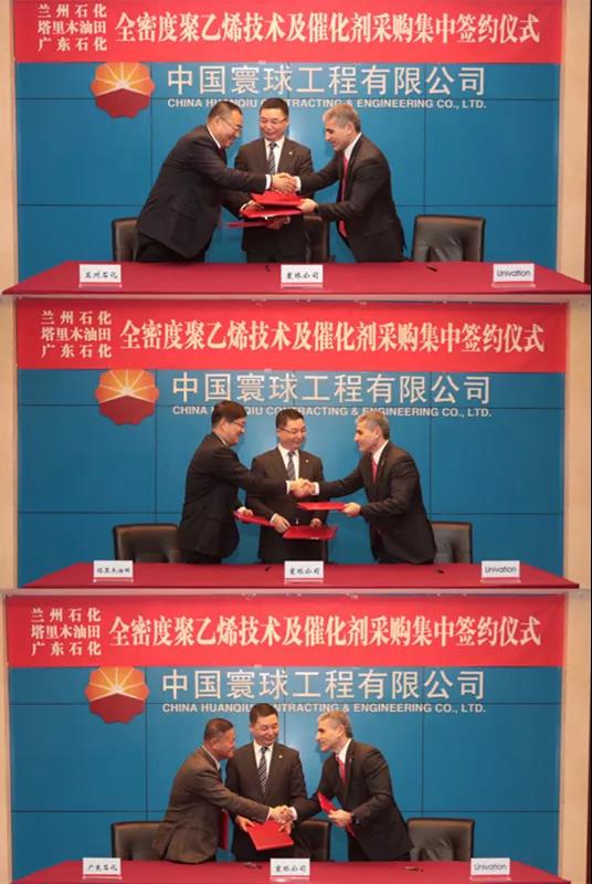 在與會(huì)人員的共同見證下,各方代表分別簽署了三個(gè)項(xiàng)目全密度聚乙烯和高密度聚乙烯技術(shù)引進(jìn)合同。