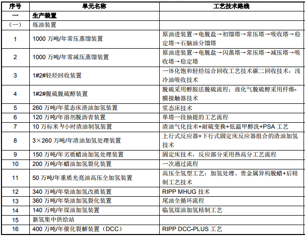 項目擬建設2000萬噸/年原油加工能力,主要配置1000萬噸/年常壓蒸餾裝置和1000萬噸/年常減壓蒸餾裝置、輕烴回收裝置、脫硫脫硫醇裝置、渣油加氫裝置等煉油工藝裝置,乙烯、裂解汽油加氫、芳烴抽提、丁二烯抽提、EVA/LDPE等化工工藝裝置,配套公用工程、輔助設施和海水淡化、海水取水及排水等設施。