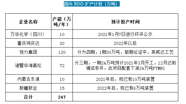 萬華投資10萬噸BDO項(xiàng)目