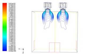爐膛溫度場模擬 | .jpg) 燃燒器中心截面CH4濃度場分布 |