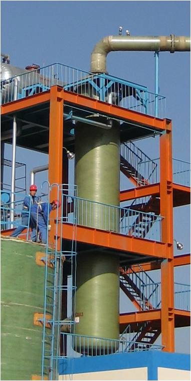 降膜吸收器后煙氣進(jìn)入堿洗填料塔,實現(xiàn)用堿性洗滌液高效地對煙氣進(jìn)行最終的洗滌處理,通過酸堿中和反應(yīng)把去除煙氣中剩余微量HCl和Cl2,保證煙氣排放達(dá)到國家標(biāo)準(zhǔn)。